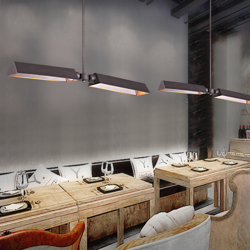 Suspension triangulaire traditionnelle en métal avec 2 lumières - Gris/doré - Idéal pour les salles à manger