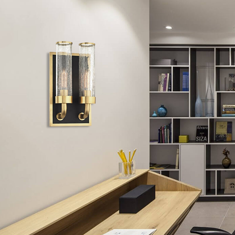 Applique murale vintage en laiton avec abat-jour en verre craquelé transparent - Éclairage mural en tube métallique pour salle à manger (1/2 lumières)