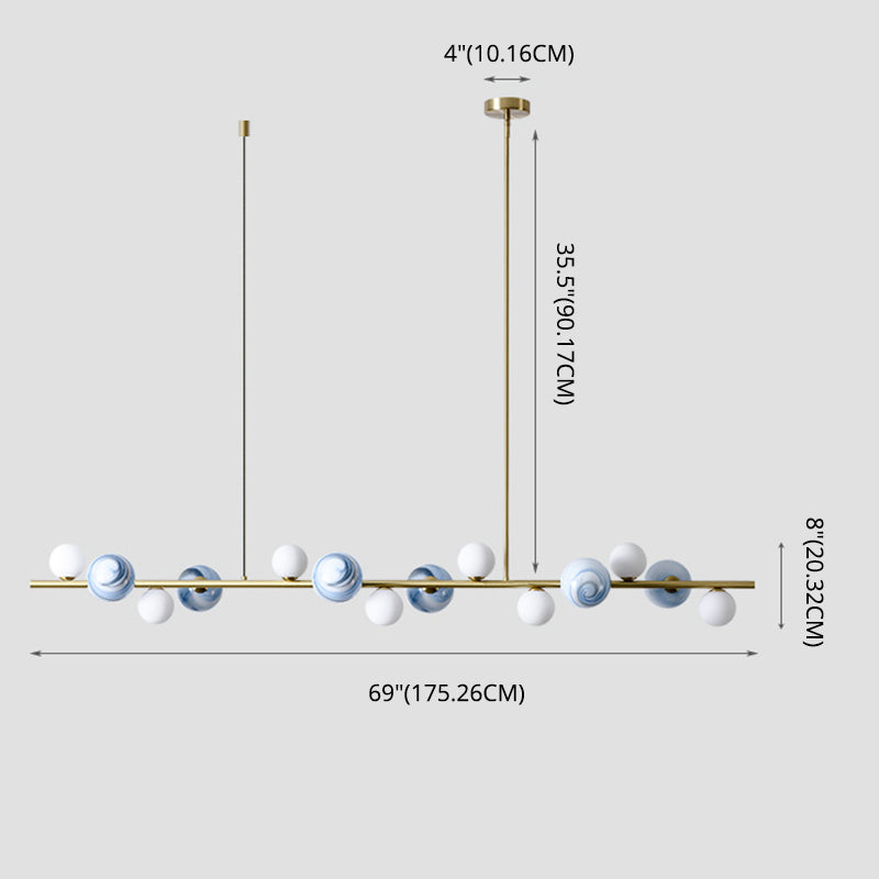 Contemporary Gold Metal Island Pendant Light With Glass Sphere For Dining Table 14 / Blue