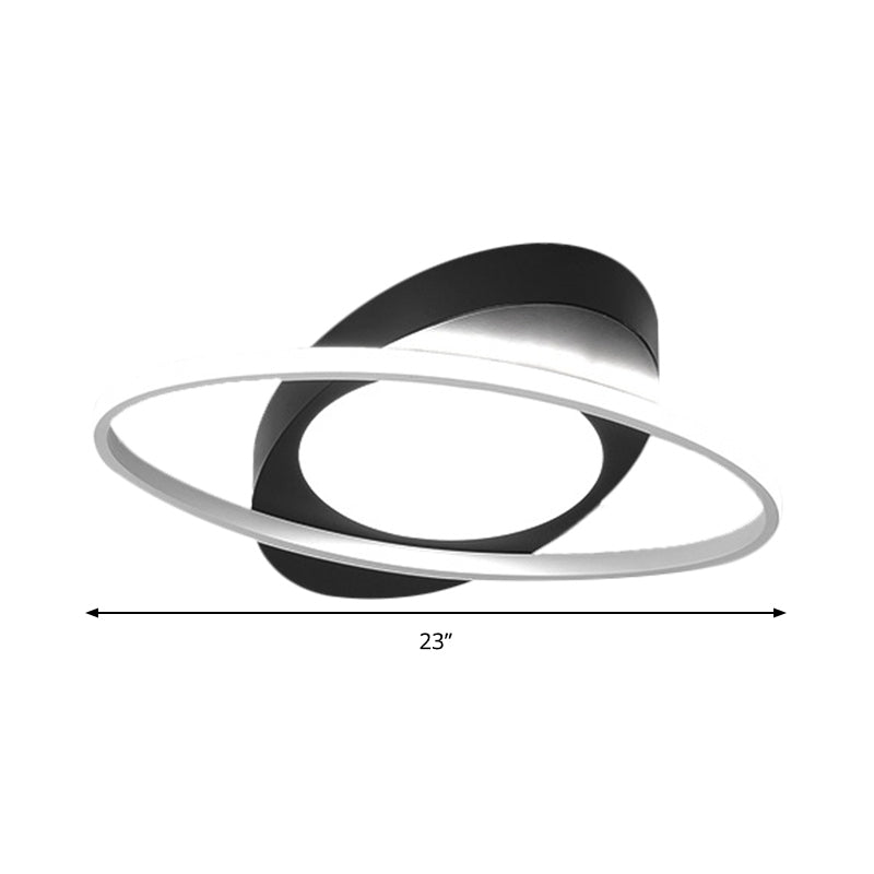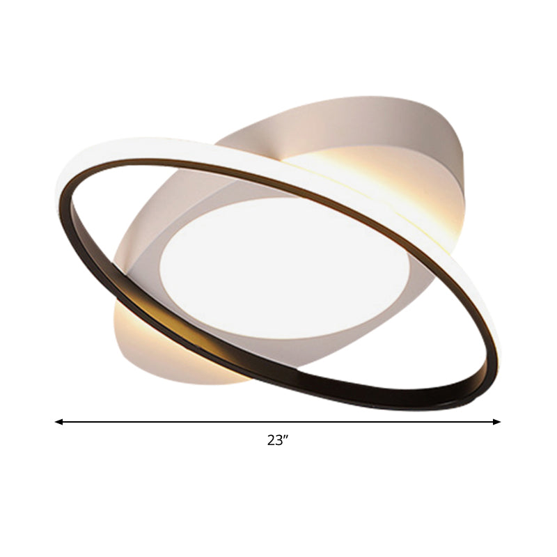 Modern Orbit Ceiling Flush Light - Led Bedroom Flushmount 18’/23’ Wide Black/White Acrylic