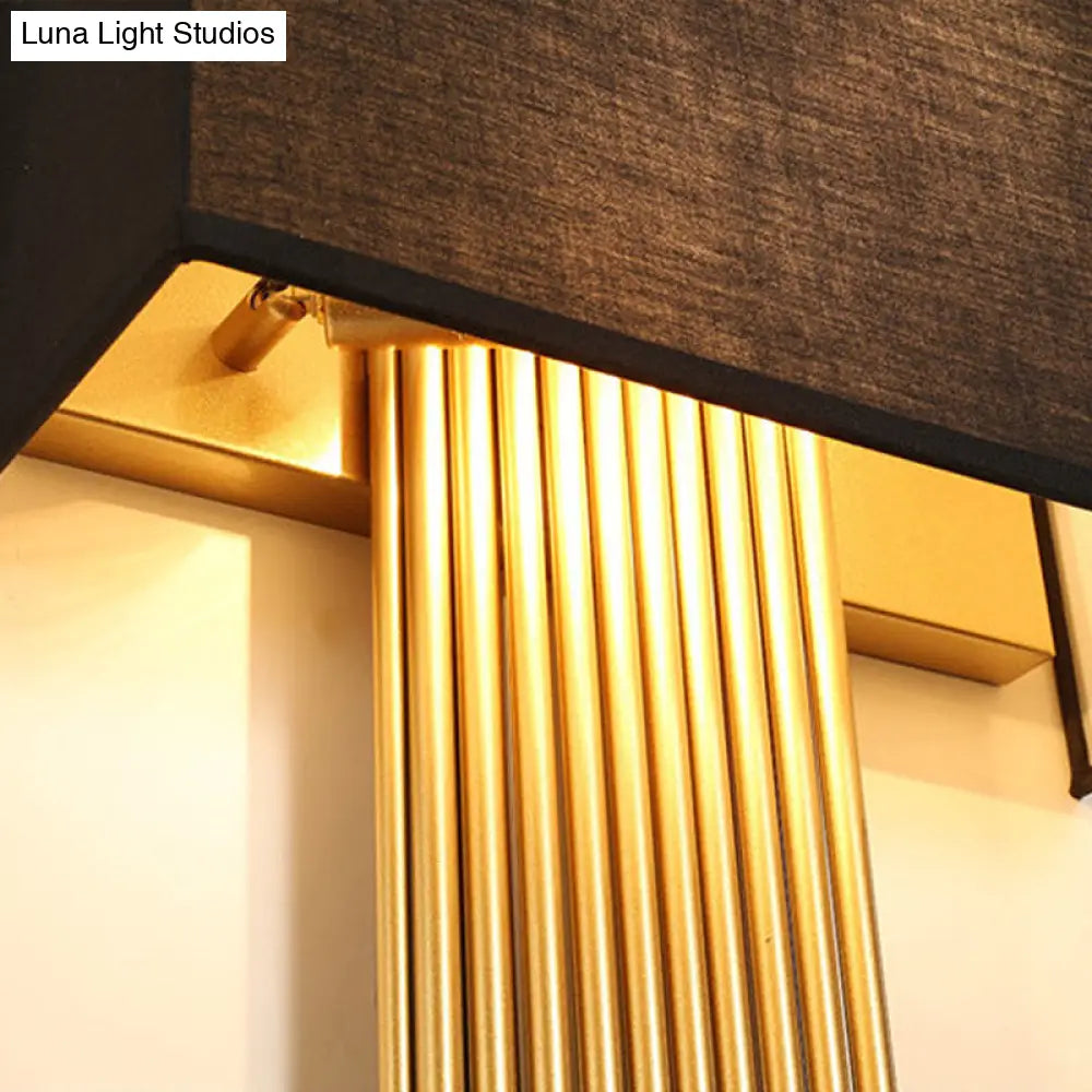 Applique murale contemporaine à 2 têtes avec abat-jour en tissu – Design rectangulaire moderne en noir/blanc/flaxen – Idéale pour le salon, 14"/16" de large