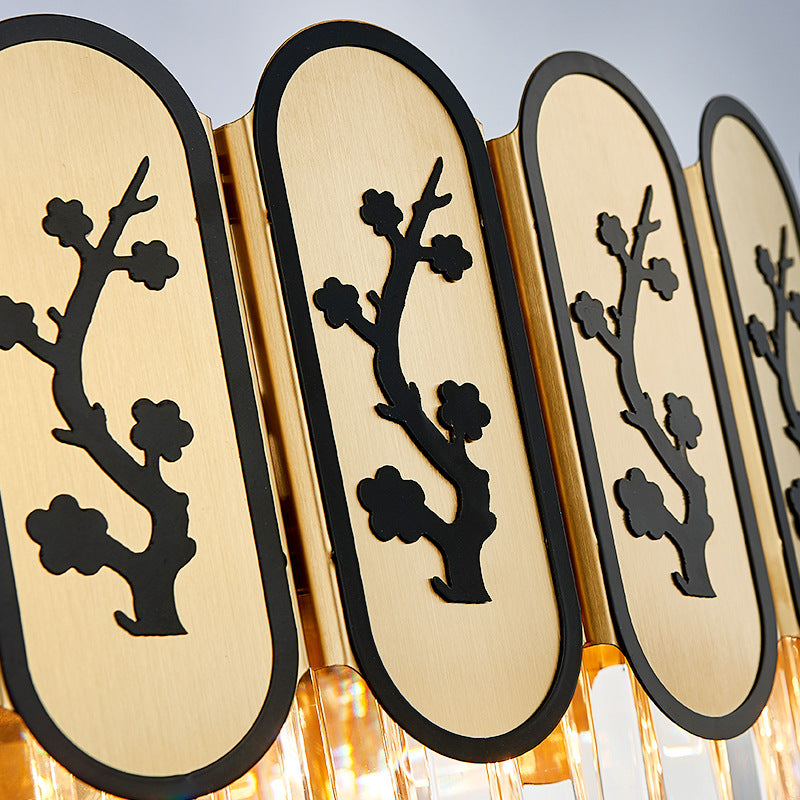 Lustre rond moderne avec motif floral, suspension en cristal et métal pour chambre à coucher - Finition laiton