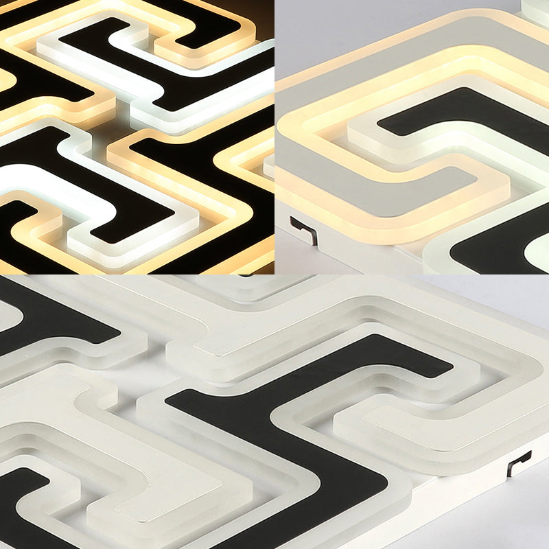 Modern Led Flush Mount Ceiling Light With Acrylic Maze Shade - Black Finish Warm/White/Second Gear /