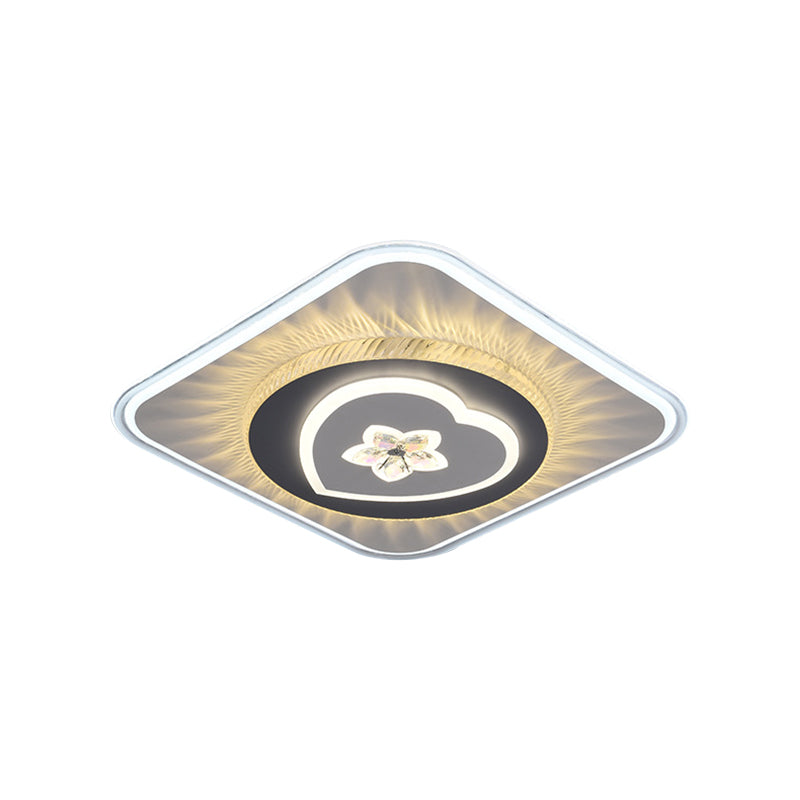 Grey Nordic Square Flush Mount Led Ceiling Light Fixture With Acrylic Design (Round/Heart)