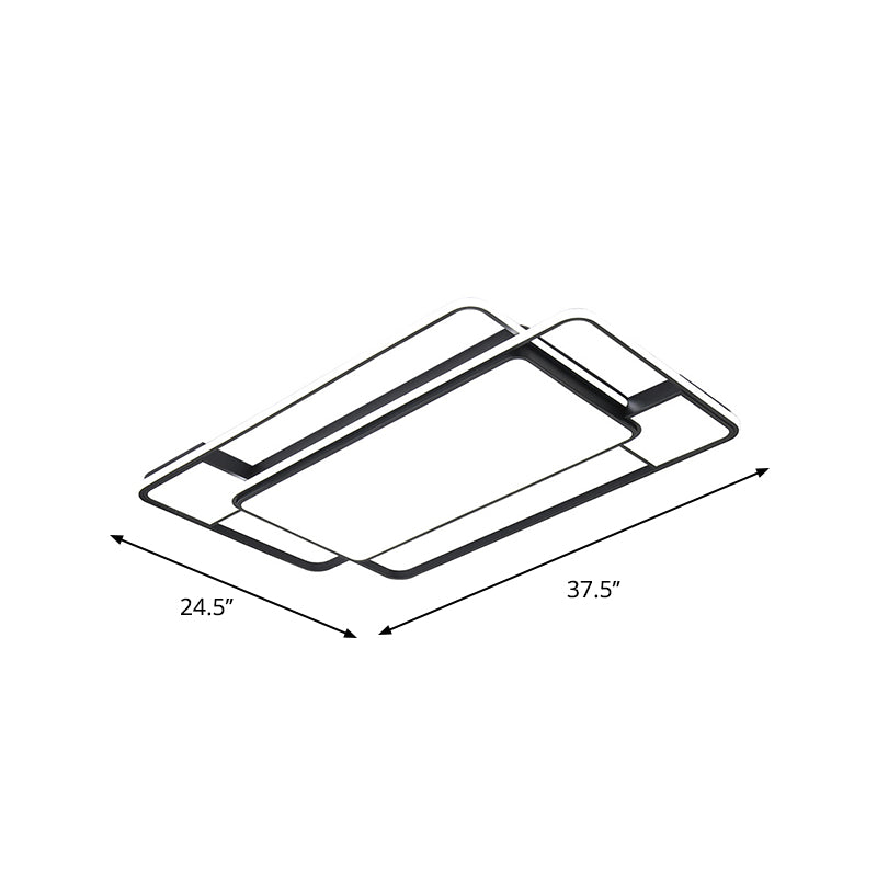 Modern Led Flush Mount Ceiling Lamp: Acrylic Black Square/Rectangle With 3 Color Light Options