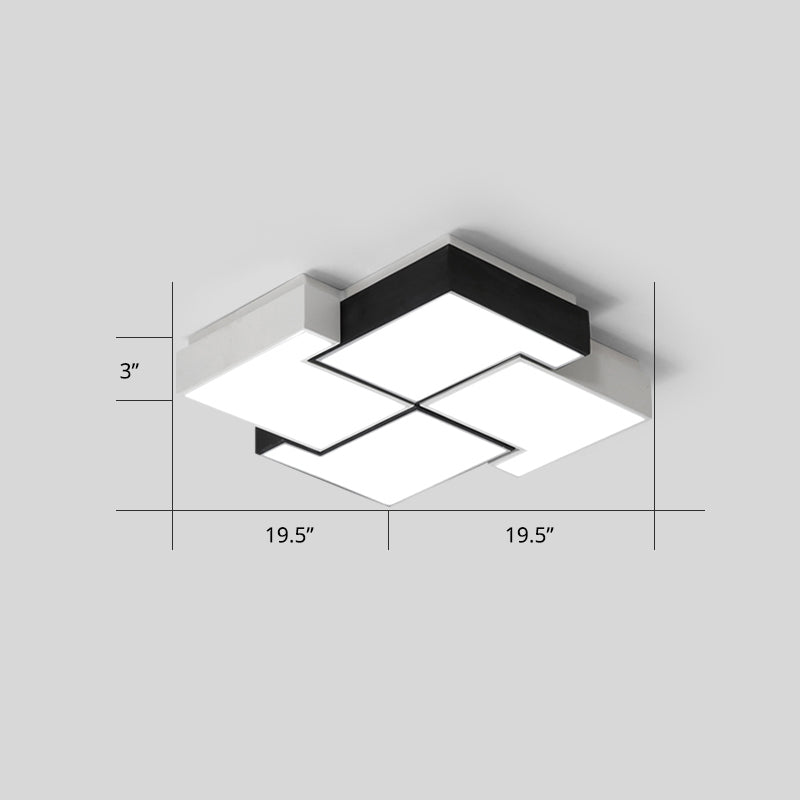 Plafonnier LED moderne à encastrer de style nordique pour chambre à coucher - Finition en métal noir et blanc