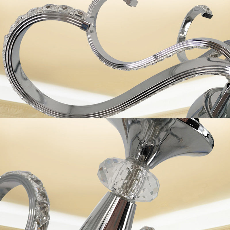 Lustre LED en cristal minimaliste en chrome | Éclairage chaud/blanc