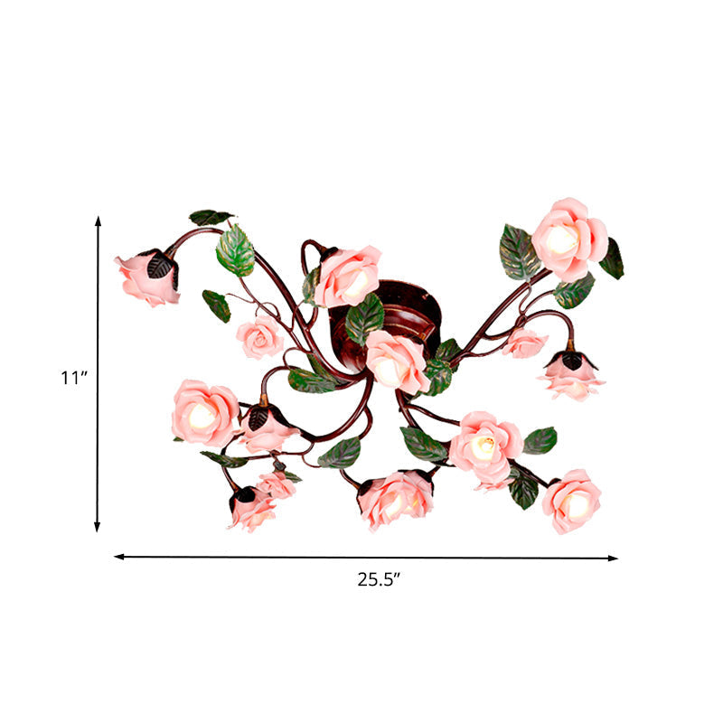 Plafonnier semi-encastré en métal de jardin américain avec 12 lumières LED en marron foncé pour plafond de chambre à coucher rose