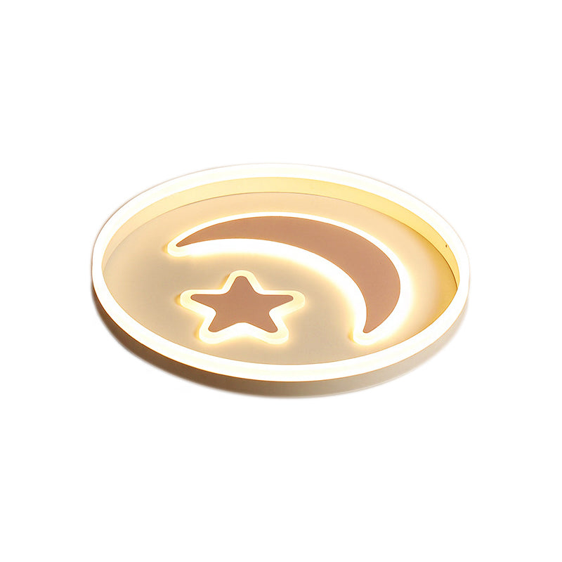 Cartoon Style Round Acrylic Ceiling Mount Led Lamp In Warm/White Light For Bedroom - Black/White