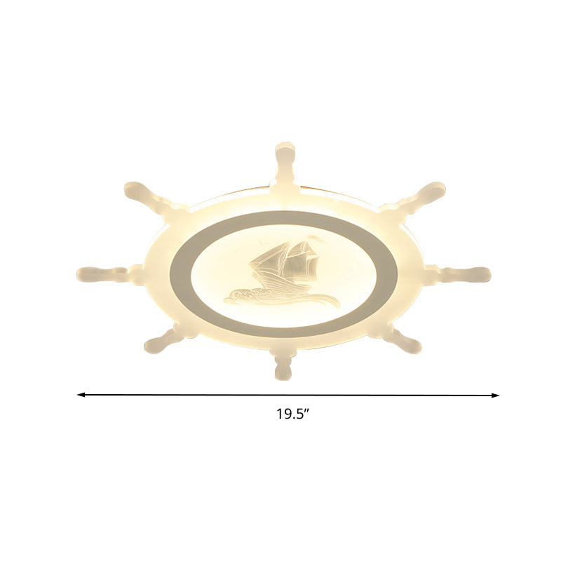 Rudder Kids White Ceiling Mount Light: Nautical Style Led Lamp
