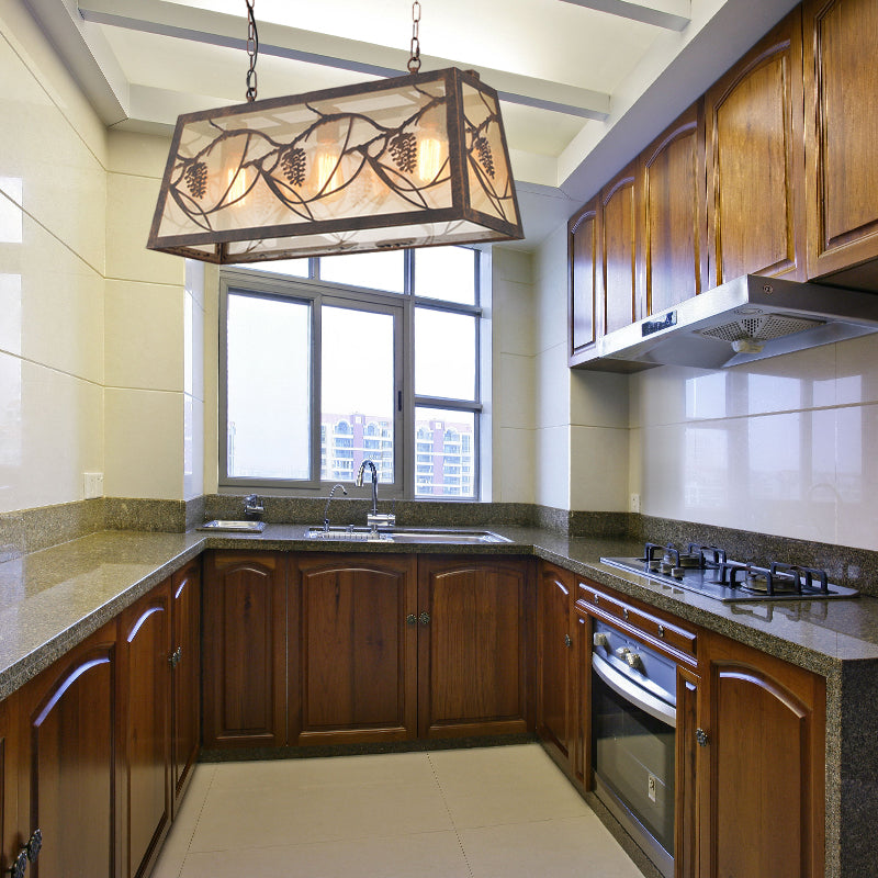Luminaire rustique en métal pour îlot : éclairage suspendu de style campagnard pour salon - 3/6 lumières, design rectangulaire