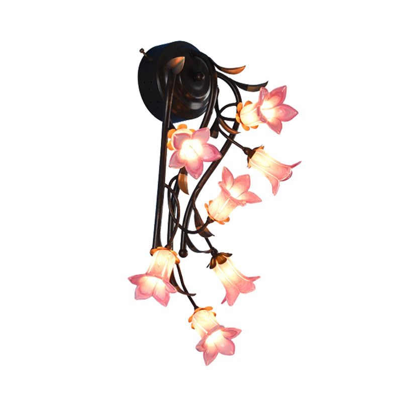 Rustic Blossom Wall Mounted Lamp - 7-Light White/Green/Purple Glass Sconce Gold Finish For Living
