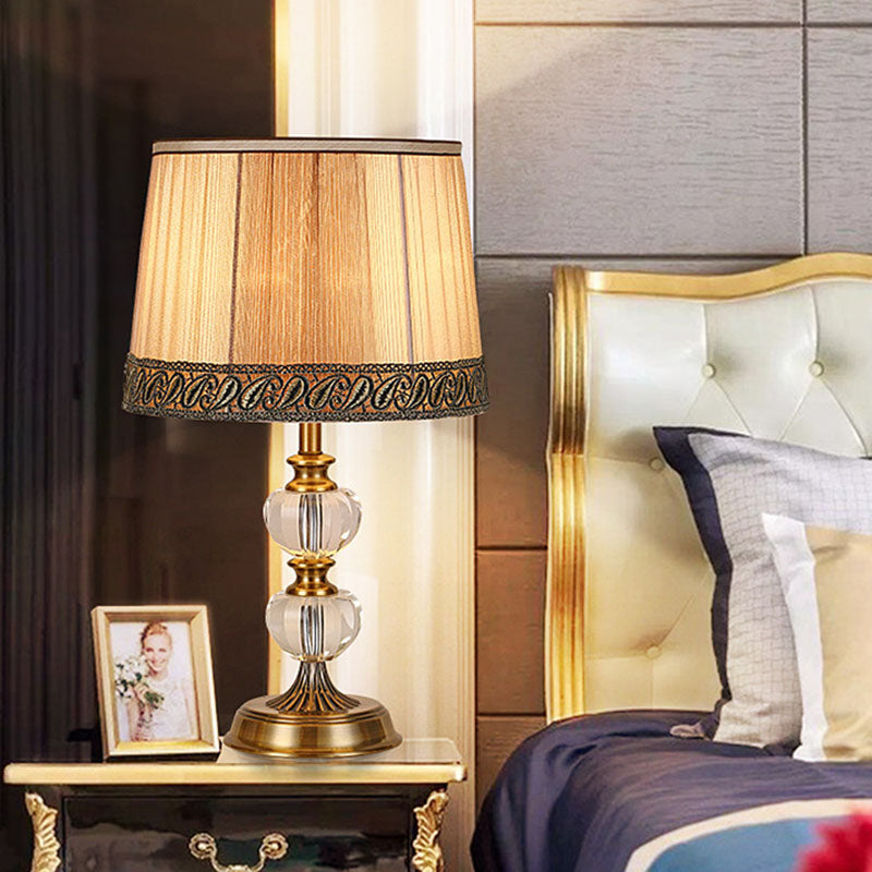 Lampe de table rustique en tissu à ampoule unique pour chambre à coucher avec accent de cristal
