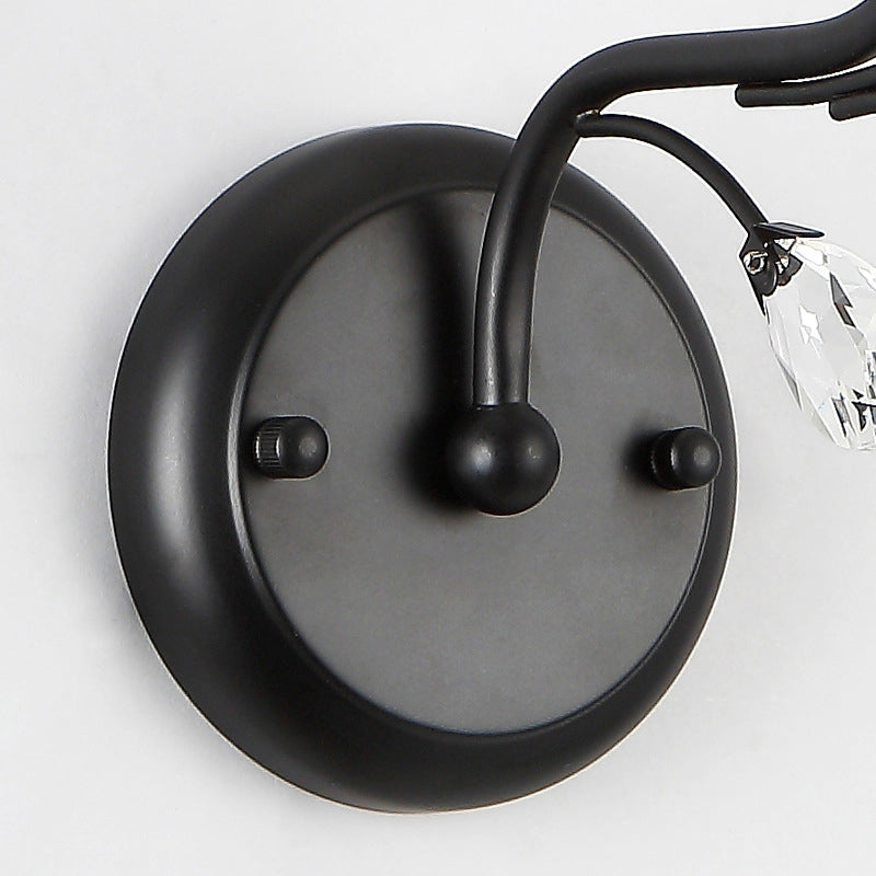 Farmhouse Black Metal Wall Light - Single-Bulb Candle Sconce With Crystal Twig Accents / D