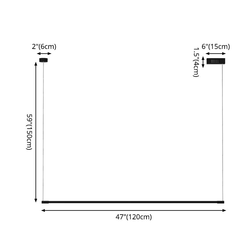 La taille de ce produit est de 25 pouces et plus, avec une longueur de 47", une largeur de luminaire de 4" et une hauteur de luminaire de 4". Il comprend une longueur de chaîne/cordon de 59", et est livré avec une ampoule incluse. La couleur est noire, avec une température de couleur blanc chaud naturel, une télécommande à gradation continue. La forme de la verrière est un rectangle linéaire et le nombre de lumières est de 1. Le style est moderne et la puissance maximale de l'ampoule est de 39 watts et moins. Le matériau est en métal, la direction de l'abat-jour est vers le bas et la couleur de l'abat-jour est noire. Le type de luminaire est linéaire. Le matériau de l'abat-jour est en métal et la tension est de 110 V-120 V 220 V-240 V. La base de l'ampoule est SMD et le type de lumière est LED.