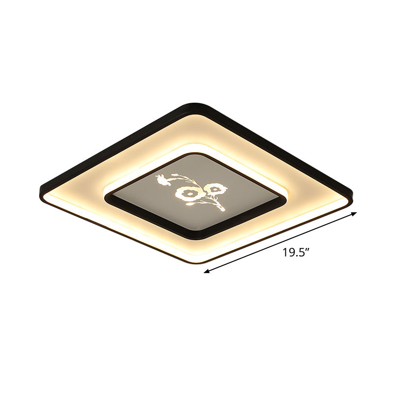 Modern Acrylic Led Ceiling Light Fixture In Black Square/Rectangular Flush Mount White/Warm