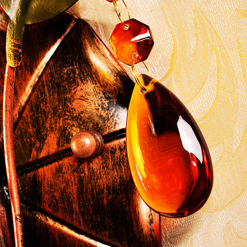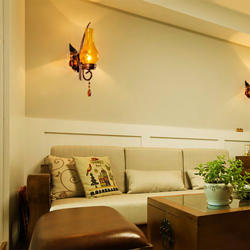 Support mural de vase en verre craquelé jaune clair avec déco en cristal orange - Applique murale de salle de bain à 1 lumière