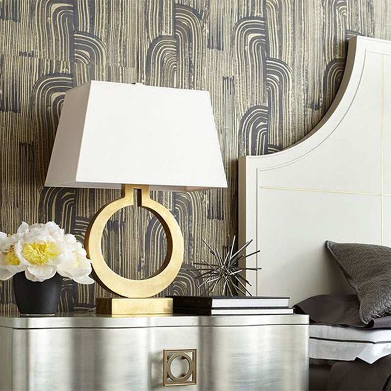 Veilleuse en tissu trapézoïdal de style rustique - 1 éclairage de table lumineuse pour salle d'étude avec anneau en métal doré