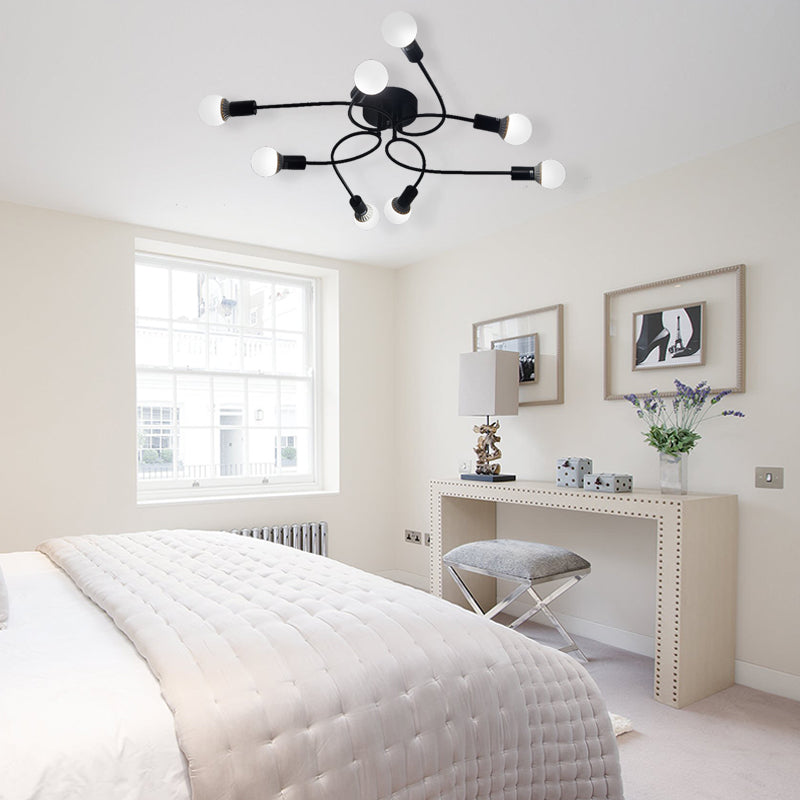 Vintage Style Twisted Arm 8-Light Semi Flush Mount Ceiling Light In Black/White For Living Room