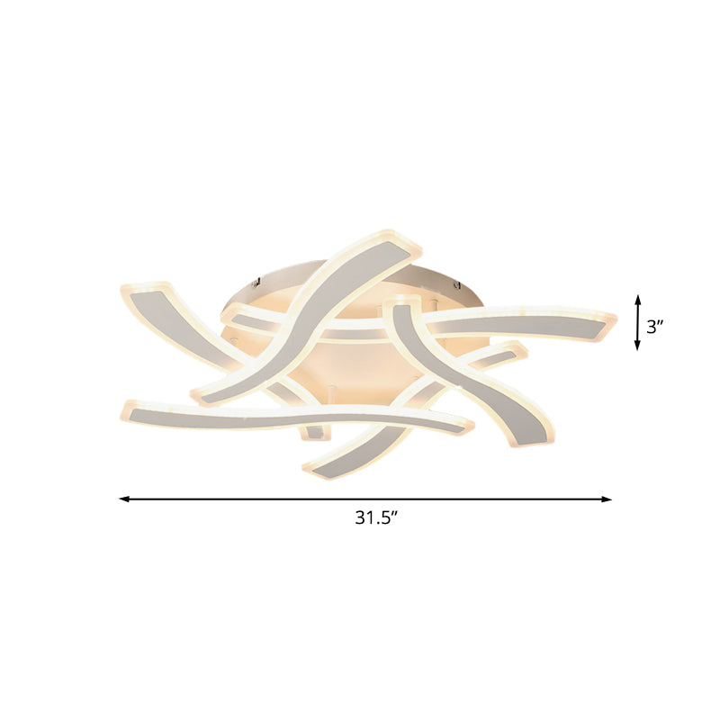 White Cross Wave Flush Mount Led Ceiling Light For Bedroom - Modernist Design And Warm Ambiance /