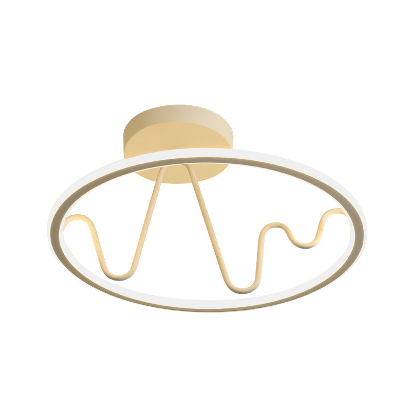 Sleek White Led Semi Flushmount Lighting With Ring And Spiral Design