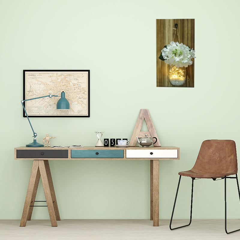 Guirlande lumineuse murale fleur bocal en verre nordique avec plaque arrière en bois, lumière scintillante blanche
