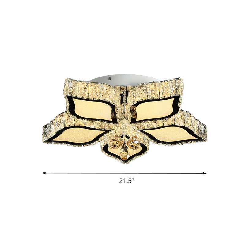 Plafonnier LED moderne en forme de fleur en cristal pour chambre à coucher - Lumière 3 couleurs/Télécommande à intensité variable