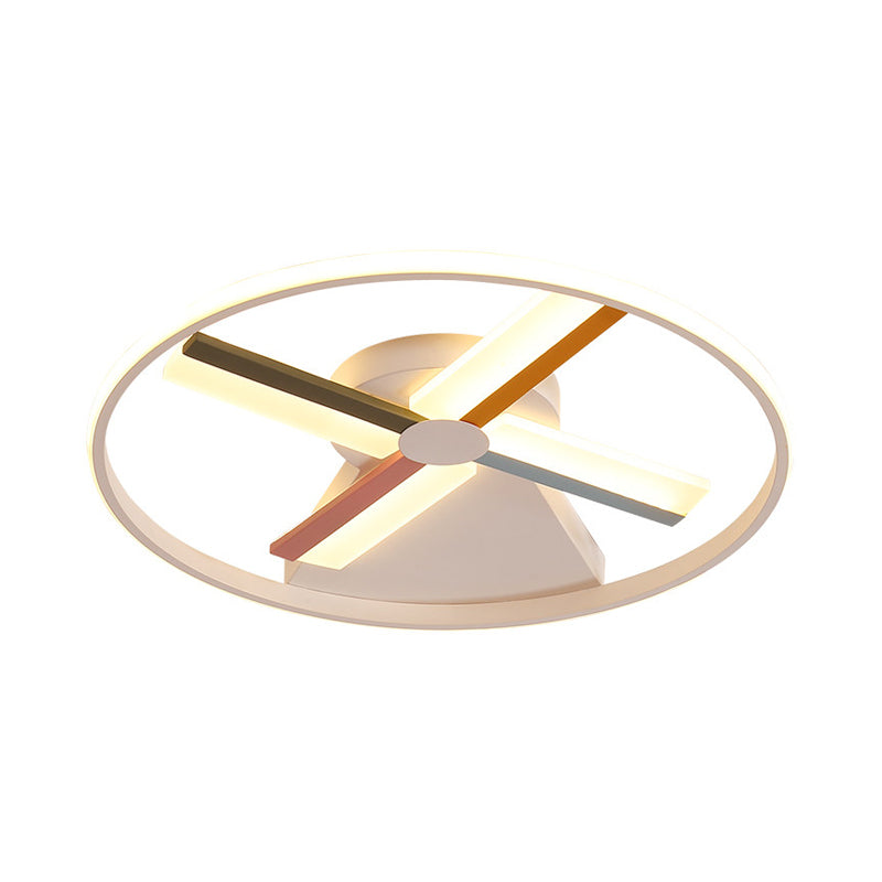 Support de plafond à LED contemporain en forme de moulin à vent blanc pour une lumière de chambre chaude/blanche